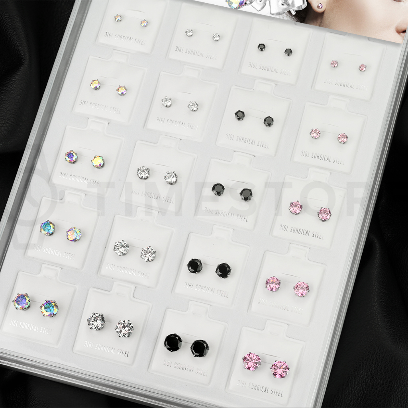 Naušnice sa cirkonima od kirurškog čelika, SET od 20 pari